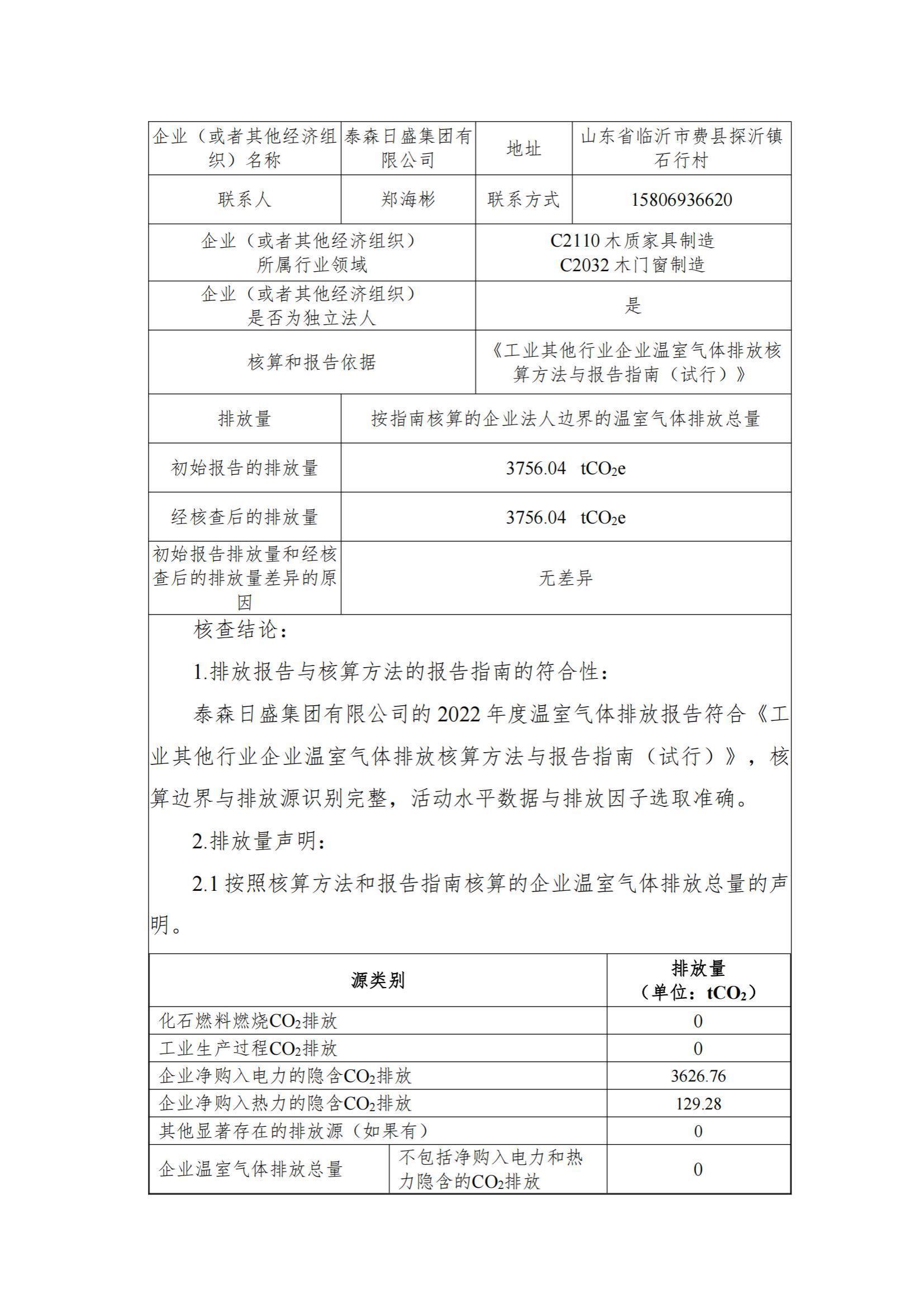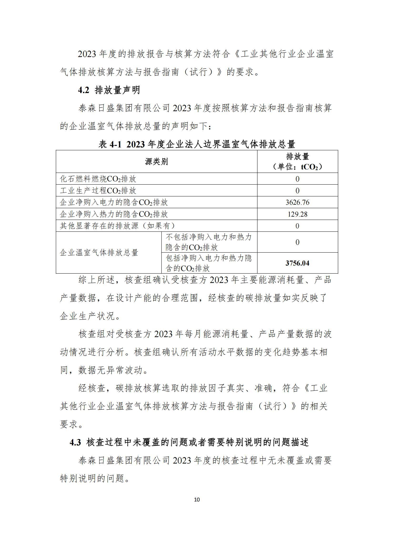 泰森日盛集團(tuán)有限公司--碳核查報(bào)告